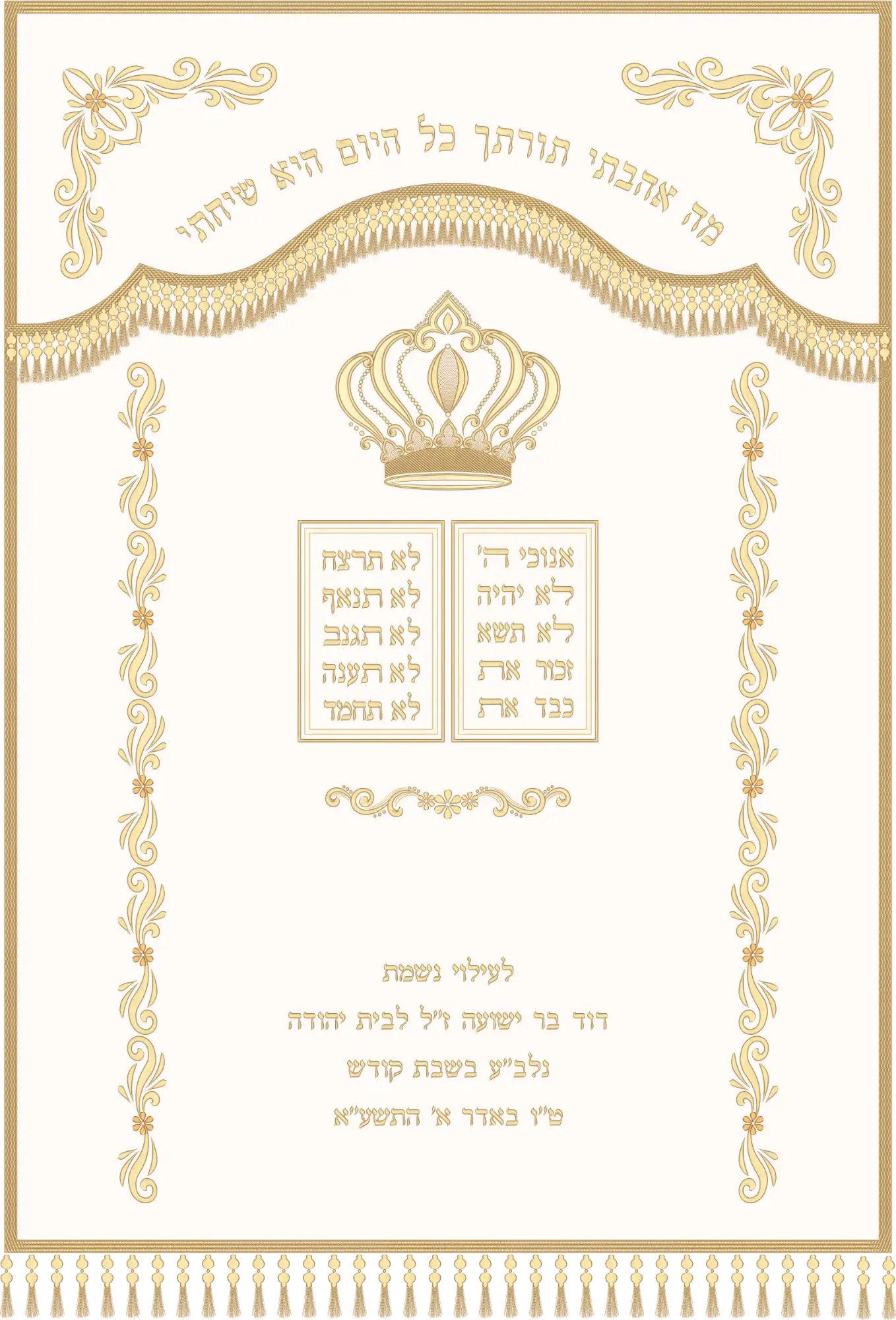 ביחד נשיק בס"ד, עוד פרוכת בעיצוב מרהיב מבית ארגמן שתפאר את בית הכנסת ותנציח את יקירך.