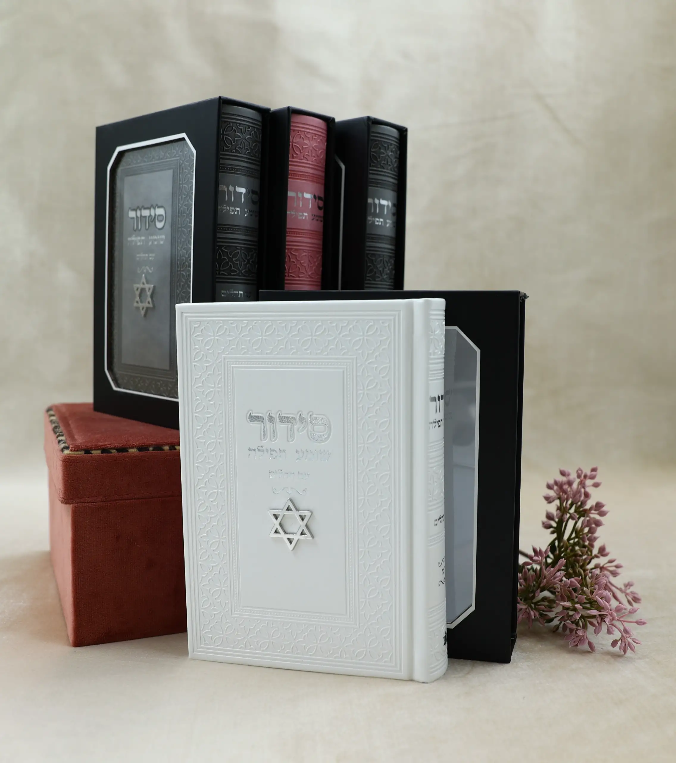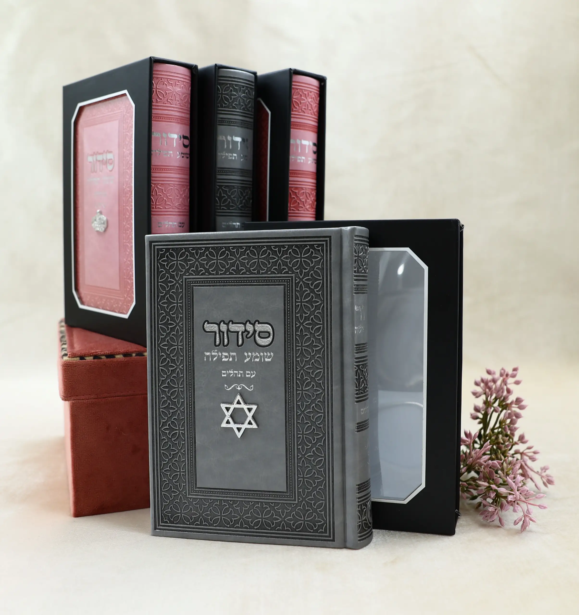 סידור כריכה דמוי עור עם צ'ארמס מגן דוד עם הטבעת שם. גודל: 12*17 ס"מ