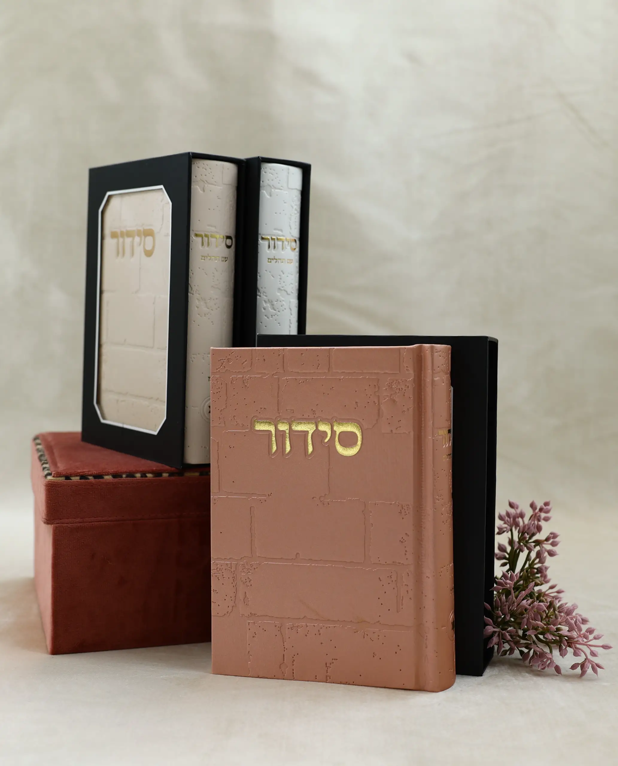 סידור כריכה דמוי עור צורת כותל עם הטבעת שם. גודל: 12*17 ס"מ