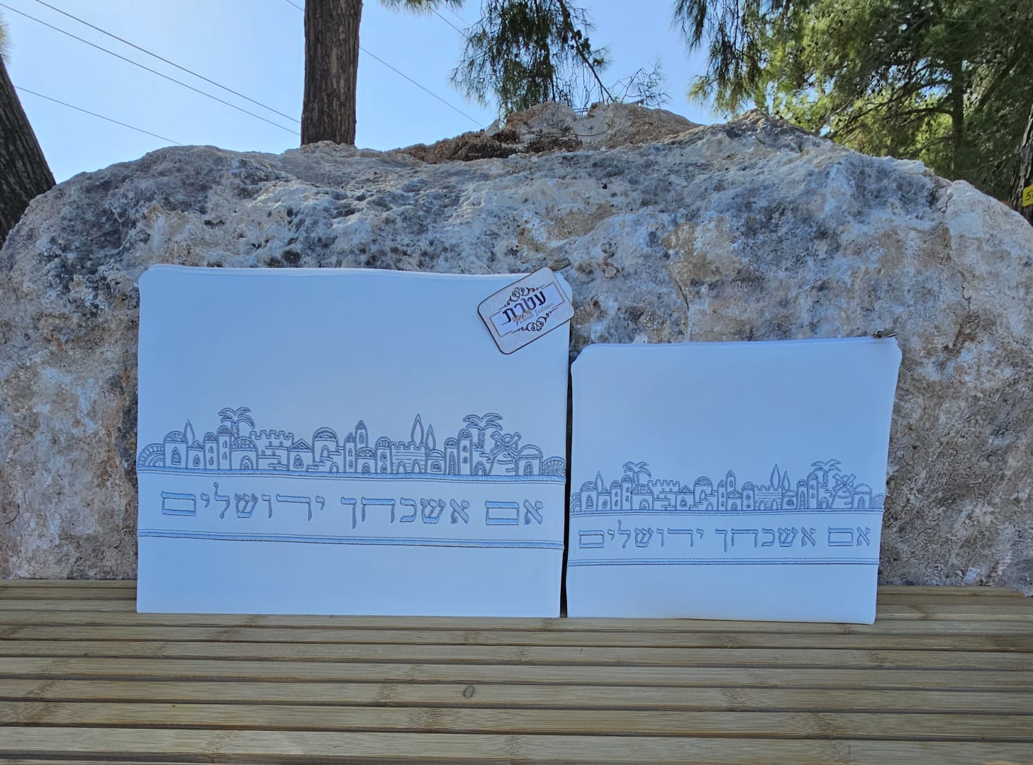 כיסוי טלית ותפילין דמוי עור לבן חומות ירושלים